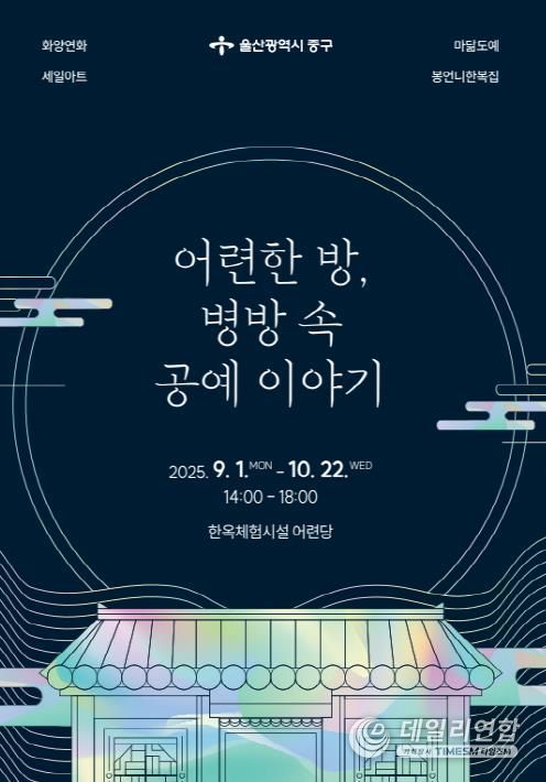 데일리연합 (SNSJTV) 장우혁 기자 | 울산 중구가 9월 1일부터 10월 22일까지 어련당 병방에서 ‘어련한 방, 병방 속 공예 이야기’ 전시를 개최한다.