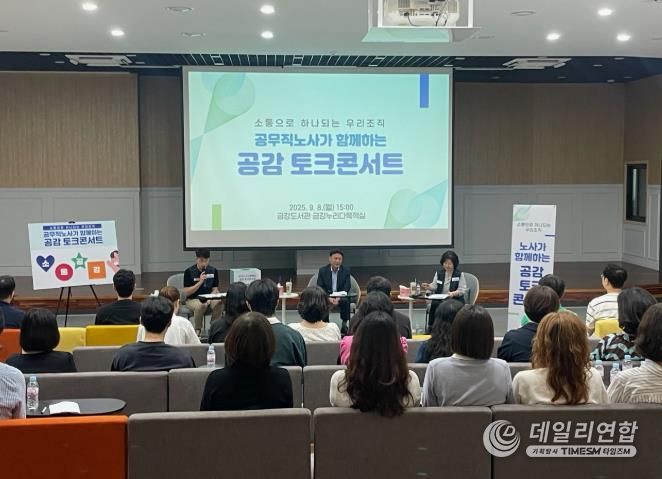 데일리연합 (SNSJTV) 김준 기자 | 군산시가 8일 금강도서관 금강누리다목적실에서 '공무직 노사가 함께하는 공감 토크콘서트'를 개최했다.