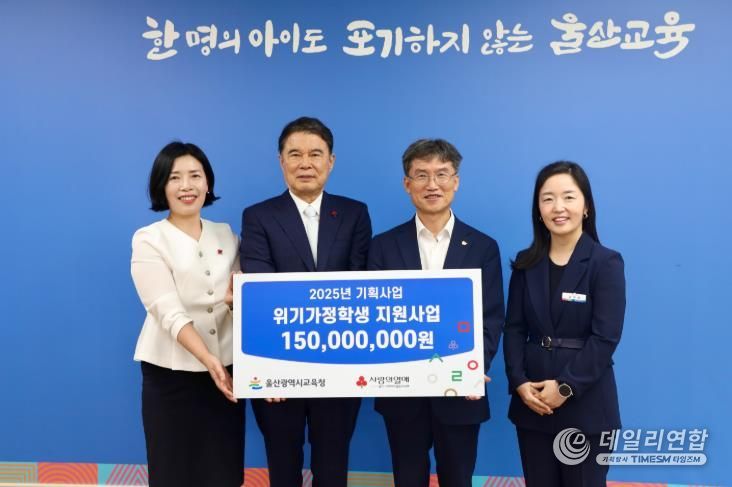 데일리연합 (SNSJTV) 김준 기자 | 울산광역시교육청은 8일 울산사회복지공동모금회에서 위기가정 학생을 위한 지원금 1억 5,000만 원을 전달받았다.