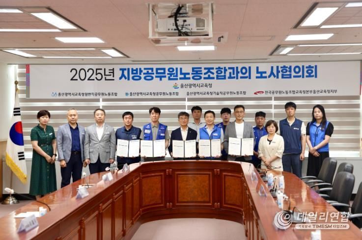 데일리연합 (SNSJTV) 김준 기자 | 울산광역시교육청은 8일 지방공무원노동조합연대 4개 단체와 ‘2025년 상반기 노사협의회 합의문’에 서명했다.