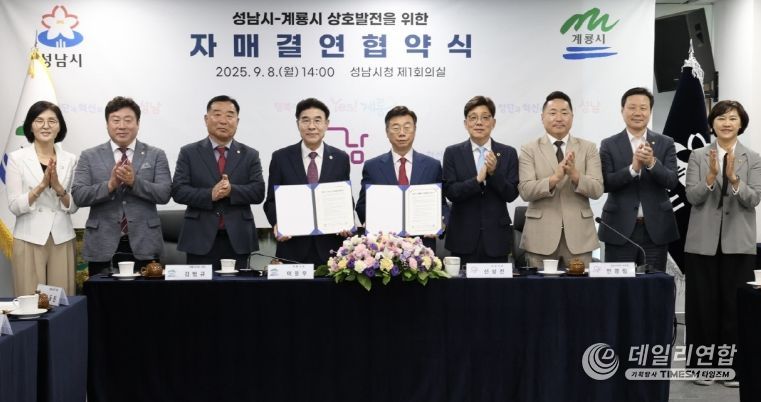 데일리연합 (SNSJTV) 이권희 기자 | 계룡시와 경기도 성남시가 8일 성남시청에서 우호 교류 증진과 상호 발전 자매결연 협약을 체결했다고 밝혔다.