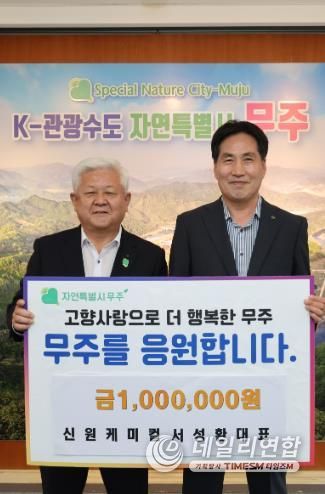 데일리연합 (SNSJTV) 김준 기자 | 신원케미칼 서성환 대표가 지난 9일 무주군에 고향사랑기부금 1백만 원을 기탁했다.