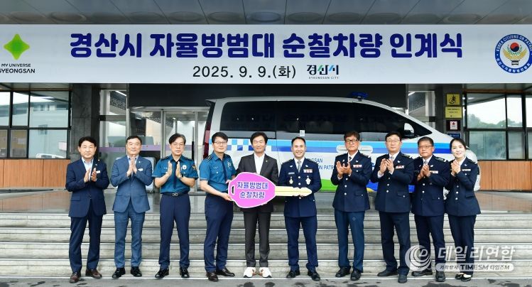 데일리연합 (SNSJTV) 장우혁 기자 | 경산시는 9일 경산시 범죄예방 활동에 앞장서는 경산시 자율방범대연합대를 지원하고자, 중형 승합차를 구매하여 경산시 자율방범연합대 순찰차량으로 인계했다.