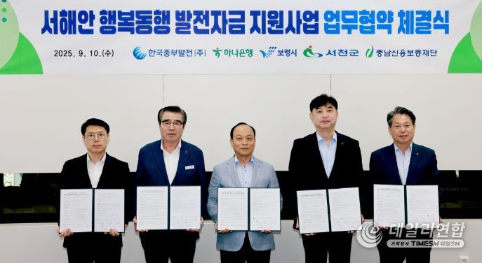 데일리연합 (SNSJTV) 임재현 기자 | 보령시는 10일 한국중부발전, 하나은행, 충남신용보증재단 등과 소상공인 경영 안정화를 위한 ‘서해안 행복동행 발전자금 지원 업무협약’을 체결했다고 밝혔다.