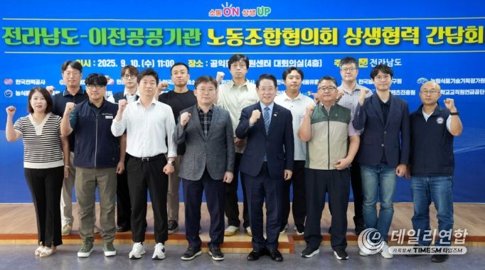 데일리연합 (SNSJTV) 임재현 기자 | 김영록 전라남도지사는 10일 광주·전남 공동혁신도시 이전공공기관 노동조합협의회와 상생협력 간담회를 열어 혁신도시 활성화와 이를 위한 협력체계 강화 방안과 2차 공공기관 이전 성공전략 등을 논의했다.