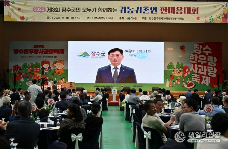 데일리연합 (SNSJTV) 김민제 기자 | 장수군은 18일 장수한누리전당 산디관에서 ‘2025 장수군민 모두가 함께하는 귀농귀촌인 한마음대회’를 성황리에 개최했다고 밝혔다.