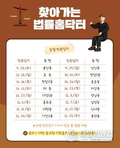 데일리연합 (SNSJTV) 김민제 기자 | 대전 동구는 구민들의 생활 속 법률 고민을 해소하기 위해 ‘법률홈닥터 찾아가는 무료 법률상담 서비스’를 운영한다고 18일 밝혔다.
