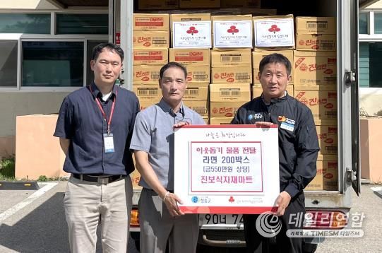 데일리연합 (SNSJTV) 김민제 기자 | 청송군은 지난 17일 추석 명절을 앞두고 진보면 소재 진보식자재마트(대표 박건)에서 550만 원 상당의 라면 200상자를 진보면에 기탁받았다고 밝혔다.