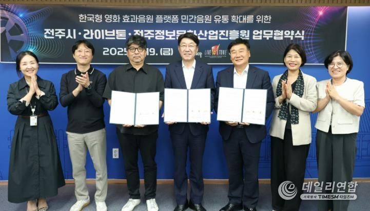 데일리연합 (SNSJTV) 김민제 기자 | 영화의 도시 전주시가 한국형 영화 효과음원 유통서비스를 확대하기 위해 국내 최대 영화음향 전문기업과 손을 맞잡았다.