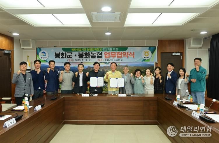 데일리연합 (SNSJTV) 김민제 기자 | 봉화군과 봉화농업협동조합(봉화농협)은 지난 19일 봉화군청 소회의실에서 봉화상설시장에 위치하고 있는 농협양곡창고 활성화를 위한 업무협약을 체결했다.