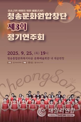 데일리연합 (SNSJTV) 김민제 기자 | 청송군은 오는 9월 25일 목요일 오후 7:00부터 청송문화예술회관 대공연장에서‘청송문화원합창단 제3회 정기연주회’를 개최한다고 밝혔다.