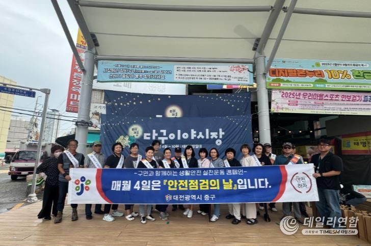 데일리연합 (SNSJTV) 김민제 기자 | 대전 중구는 제347차 안전점검의 날을 맞아 지역 내 안전사고 예방과 안전의식 제고를 위한‘안전점검의 날 캠페인’을 실시했다고 밝혔다.