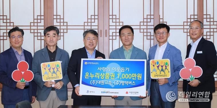 데일리연합 (SNSJTV) 김민제 기자 | ㈜대원고속·㈜평택버스는 지난 17일 추석에 앞서 취약계층을 위해 평택행복나눔본부로 온누리상품권 1천만 원을 전달했다.