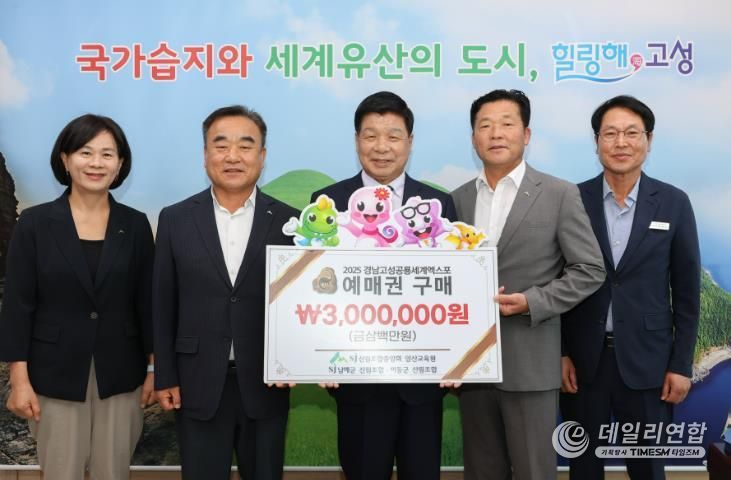 데일리연합 (SNSJTV) 김민제 기자 | 고성문화관광재단은 산림조합중앙회 양산교육원, 남해군 산림조합, 하동군 산림조합 3개 기관이'2025 경남고성공룡세계엑스포'의 성공적인 개최를 위해 300만 원 상당의 엑스포 예매권을 구매했다고 밝혔다.