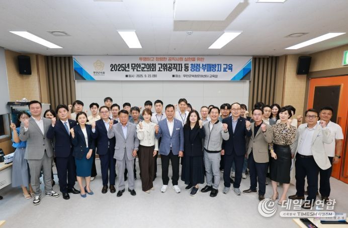 데일리연합 (SNSJTV) 장우혁 기자 | 무안군의회는 9월 23일 무안군복합문화센터 교육장에서 군의원과 의회사무과 공직자를 대상으로 청렴·부패방지 교육, 사회적 장애인식개선 교육, 4대 폭력 예방 교육을 실시했다.