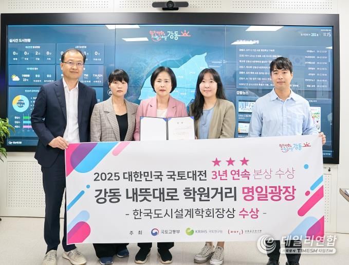 데일리연합 (SNSJTV) 김민제 기자 | 강동구는 지난 18일 ‘2025 대한민국 국토대전’에서 ‘강동 내뜻대로 학원가 명일광장 조성사업’으로 한국도시설계학회장상을 수상했다고 24일 밝혔다.