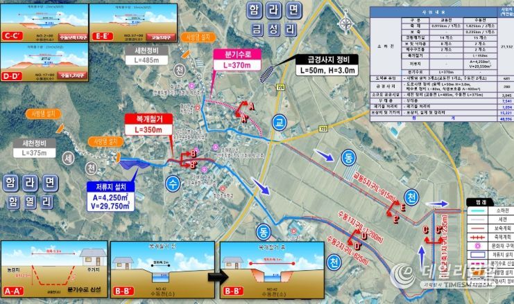 함라지구는 집중호우 시 침수 피해가 발생하고, 산지토사 유출과 노후 제방 등으로 재해 위험이 상존하는 지역이다.