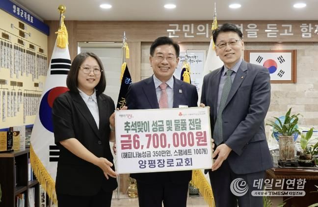 데일리연합 (SNSJTV) 김민제 기자 | 양평군은 지난 23일 양평장로교회가 추석 명절을 맞아 어려운 이웃을 돕기 위해 320만 원 상당의 스팸세트 100개와 해피 나눔 성금 350만 원을 기탁했다고 밝혔다.