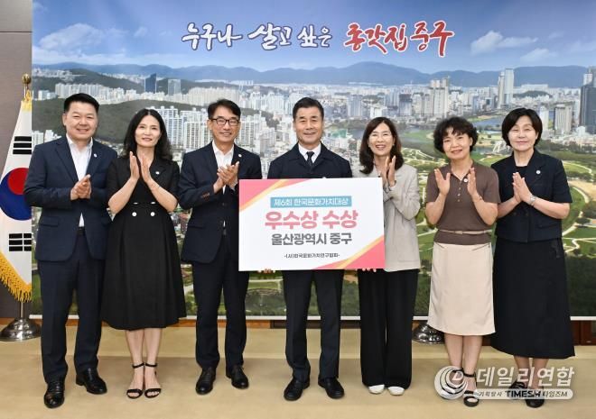데일리연합 (SNSJTV) 김민제 기자 | 울산 중구가 문화체육관광부 소속 사단법인 한국문화가치연구협회 주관 ‘제6회 한국문화가치대상’에서 우수상을 받았다.