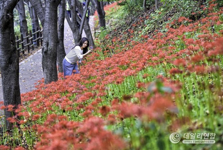 데일리연합 (SNSJTV) 박해리 기자 | 울산 남구 선암호수공원이 가을을 붉게 수놓은 꽃무릇으로 물들고 있다.