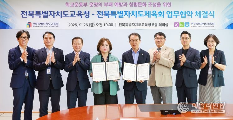 데일리연합 (SNSJTV) 김준 기자 | 전북특별자치도교육청과 전북특별자치도체육회가 공정하고 투명한 학교 운동부 환경 조성을 위해 손을 맞잡았다.