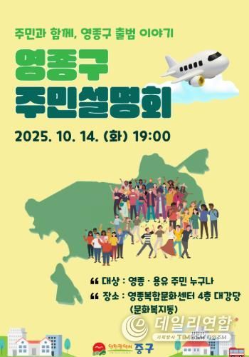이번 주민설명회는 신설 영종구의 안정적인 정착을 위해 주민들과 소통·공감하고, 지역 협력을 강화하고자 마련된 의견 수렴의 장이다. 특히 많은 주민이 참석할 수 있도록, 퇴근 시간 이후인 야간 시간대에 행사를 열게 됐다.