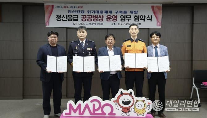 데일리연합 (SNSJTV) 김민제 기자 | 마포구는 9월 24일, 구청 9층 중회의실에서 ‘정신응급 공공병상 운영’을 위한 업무협약식을 열고, 고위험 정신질환자에 대한 24시간 신속 입원·치료 체계를 본격 가동했다.