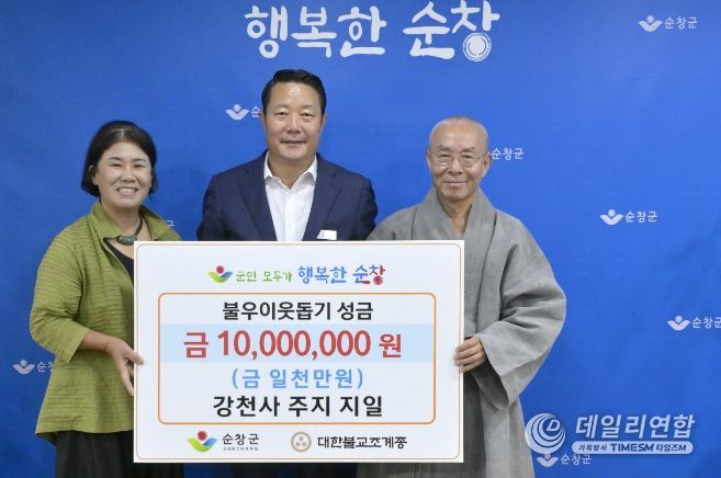 최근 강천사 지일 스님은 순창군청을 찾아 저소득 아동과 문화소외 계층을 위해 써달라며 성금 1천만원을 최영일 군수에게 전달했다.