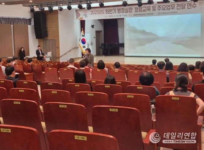 데일리연합 (SNSJTV) 김준 기자 | 경상북도김천교육지원청은 9월 29일 13시 학생문화예술센터 드림마루에서 관내 초·중·고등학교 행정실장을 대상으로 청렴교육 및 주요업무 전달연수를 개최했다.