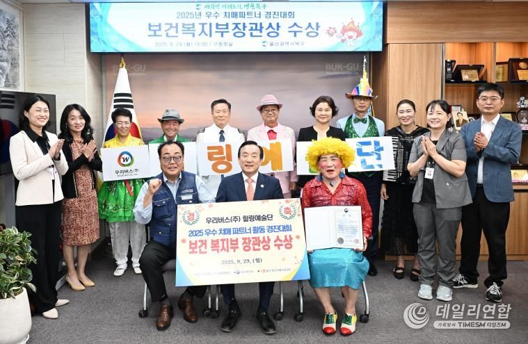 데일리연합 (SNSJTV) 김민제 기자 | 울산 북구치매안심센터는 보건복지부가 주최한 2025년 우수 치매파트너 활동 경진대회에서 우리버스(주)가 단체 부문에서 보건복지부 장관상을 수상했다고 29일 밝혔다.