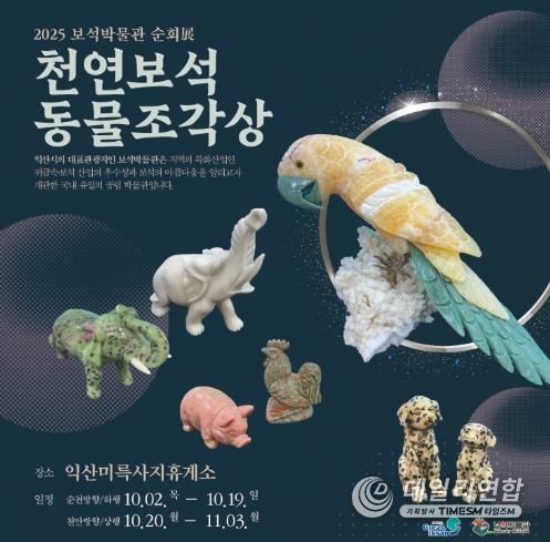 데일리연합 (SNSJTV) 박해리 기자 | 익산시 보석박물관은 추석 연휴가 시작되는 10월 2일부터 11월 3일까지 익산미륵사지휴게소(양방향)에서 '천연보석 동물조각상' 순회전시를 진행한다.