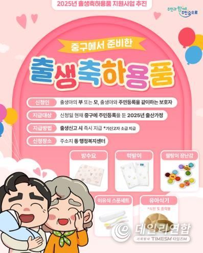 데일리연합 (SNSJTV) 김민제 기자 | 대전 중구는 출산가정을 대상으로 출생축하용품 지원 사업을 지속적으로 추진하며, 아이 낳고 키우기 좋은 지역사회 조성에 힘쓰고 있다고 밝혔다.