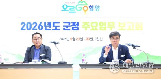 데일리연합 (SNSJTV) 임재현 기자 | 함양군은 9월 29일부터 30일까지 2일간 군청 소회의실에서 ‘2026년도 군정 주요 업무 보고회’를 개최했다.
