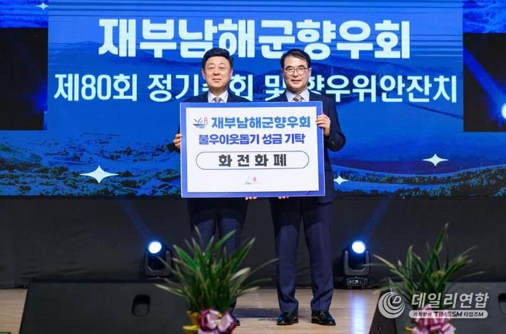데일리연합 (SNSJTV) 김민제 기자 | 남해군은 재부남해군향우회가 추석 명절을 앞두고 고향사랑 마음을 담아 500만원 상당의 화전화폐를 기탁했다고 밝혔다.