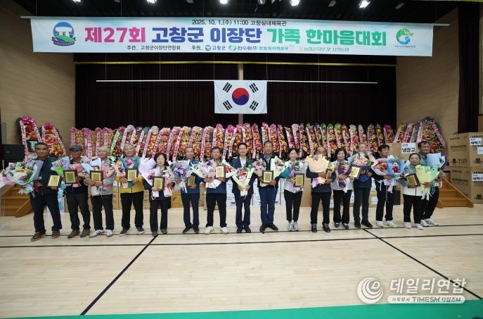 데일리연합 (SNSJTV) 김민제 기자 | 고창군 이장단 연합회(회장 김형열)가 주최한 ‘제27회 고창군 이장단 가족 한마음대회’가 1일 고창군 실내체육관에서 성황리에 열렸다.