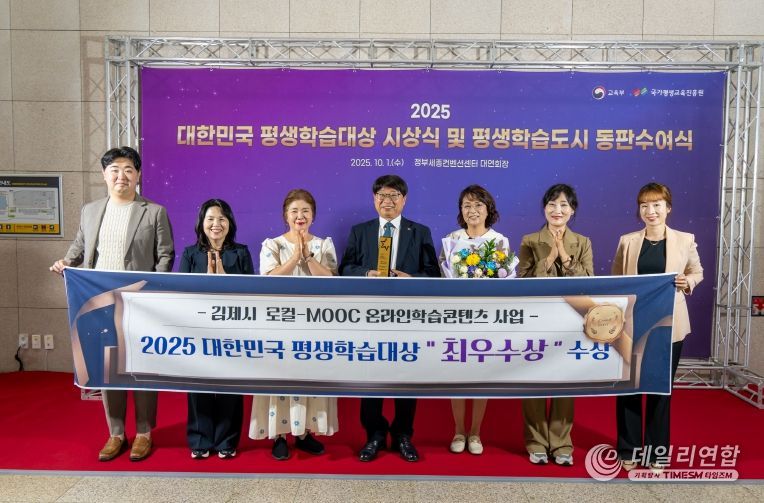 데일리연합 (SNSJTV) 김민제 기자 | 김제시가 생활 속 평생학습을 실천하고 있는 우수사례를 발굴해 시상하는 '제22회 대한민국 평생학습대상'에서 '디지털 학습시대 무형의 학습자산을 만드는 김제형 로컬-MOOC 구축사업'으로 올해의 평생학습사업 최우수상을 받았다.
