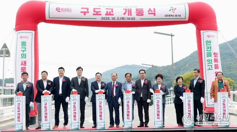 이날 개통식에는 박희조 동구청장, 오관영 동구의회의장, 이장우 대전시장을 비롯한 주요 내빈과 지역 기관·단체장, 주민 등 200여 명이 참석해 새롭게 단장한 구도교의 개통을 함께 축하했다.
