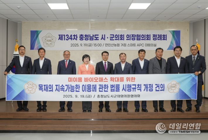 데일리연합 (SNSJTV) 장우혁 기자 | 예산군의회는 지난 9월 열린 제134차 충남 시·군의회의장협의회 정례회에서 장순관 의장이 제안하여 채택한 ‘미이용 산림바이오매스의 효율적 활용을 위한 법규 개정 건의안’을 농림축산식품부 등 관계 부처와 유관기관에 송부했다고 밝혔다.