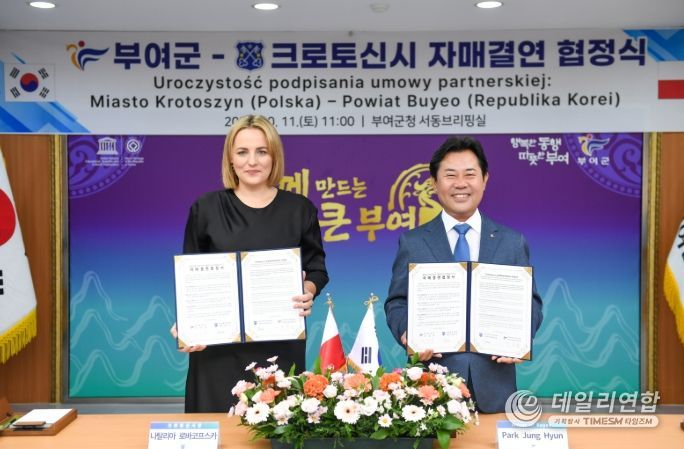 데일리연합 (SNSJTV) 김민제 기자 | 부여군)은 지난 11일 부여군청에서 폴란드 비엘코폴스카주 크로토신시 대표단을 공식 초청해 자매결연 협정을 체결했다.