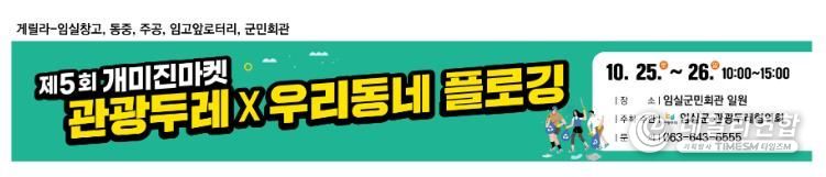 데일리연합 (SNSJTV) 김민제 기자 | 임실군 관광두레협의회가 오늘 25일부터 26일까지 2일간 임실 군민회관 일원에서 ‘2025년 개미진마켓×우리동네 플로깅’을 운영한다.