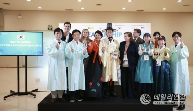 데일리연합 (SNSJTV) 김민제 기자 | 스페인을 방문한 용인특례시 대표단이 세비야에서 열린 '관광혁신 서밋(Tourism Innovation Summit) 2025'에서 한복 차림으로 행사에 참여하고 갓과 '호작도' 등을 선물해 스페인 현지의 큰 관심을 끌었다.