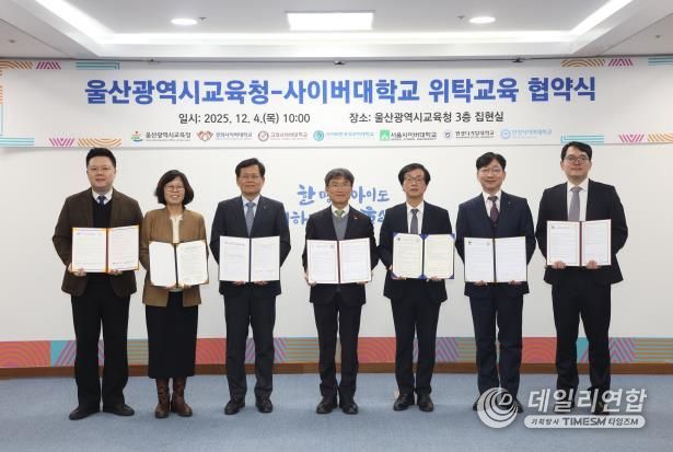 데일리연합 (SNSJTV) 김준 기자 | 울산광역시교육청은 4일 10시 집현실에서 사이버대학 6곳과 교직원 위탁교육 활성화를 위한 업무협약을 맺었다.