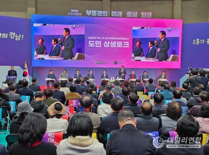 데일리연합 (SNSJTV) 김민제 기자 | 양산시는 4일 양산중앙국민체육센터 실내체육관에서 경남도지사 주재로 ‘2025 도민 상생토크’를 열고, 박완수 도지사와 나동연 양산시장, 시민이 한자리에서 지역 현안에 대한 소통의 시간을 가졌다고 밝혔다.