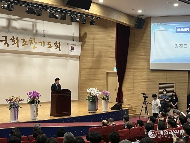10여명의 국회의장을 놓고 경쟁하면서 인선과정을 거치면서 하나님께 기도로 믿음으로 드린 약속은 상상할 수 없는 방법으로 이루어주시는구나를 느끼고 깨달으며 기도하는 마음으로 대화하고 설득하는 마음으로 나아가도록 하겠습니다. 정치가 제대로 좋은 정책과 조세제도 더 낮은 자세로 열심히 기도하면서 뜻을 이루어가도록 하겠습니다. "며 김진표 국회의장은 인사말을 전했다.