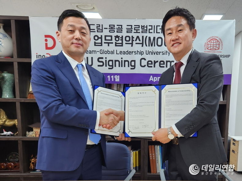 데일리연합(월간, 한국뉴스신문) 장우혁 기자 | ㈜이노드림(대표 남시범)은 지난 11일 몽골 글로벌리더십대학교(Global Leadership University)와 상호 발전을 위한 업무협약 양해각서(MOU)를 체결했다고 21일 밝혔다.