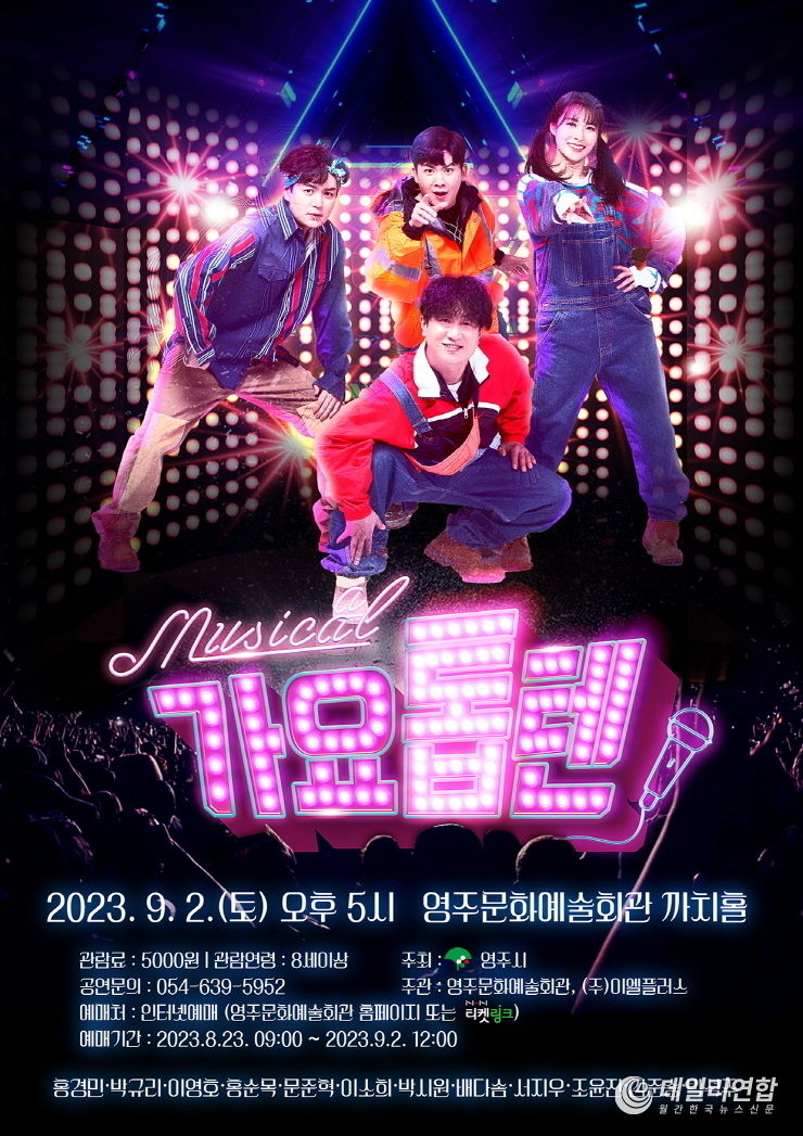 데일리연합(월간, 한국뉴스신문) 김재욱 기자 | 경북 영주시는 오는 9월 2일 오후 5시 뮤지컬 '가요톱텐'을 영주문화예술회관 까치홀에서 공연한다고 전했다.