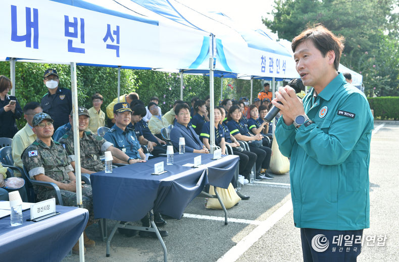 국가중요시설 무력화를 시도하는 테러리스트가 드론을 사용 지역본부에 테러를 감행하여 화재 및 인명피해가 발생한다는 가정하에 실시한 이번 훈련은 경산시청, 한국가스공사 대구경북지역본부, 경산소방서, 경산경찰서, 제7516부대, 세명병원, 중앙병원, 한국전력, KT 등 9여 기관 및 100여 명의 인원이 대거 참여해 실전과 같이 진행됐다.