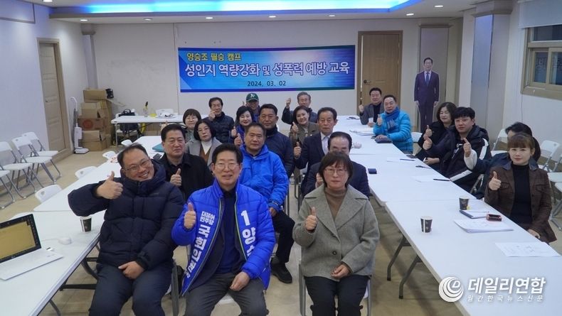 [충남=데일리연합] 정호영기자/ 양승조 국회의원 후보 ‘필승’ 캠프는 지난 2일 선거사무실에서 캠프관계자 30여 명을 대상으로 양성평등교육을 실시했다.
