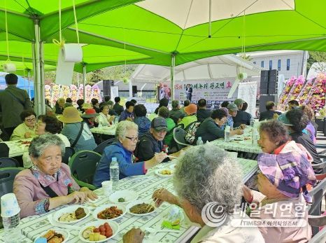 데일리연합 (아이타임즈M 월간한국뉴스신문) 정호영기자 기자 | 서천군 판교나눔사랑후원회가 지난 3일 가정의 달을 맞아 판교 어울림센터 광장에서 김기웅 서천군수를 비롯해 관내 70대 어르신, 주민 등 800여명이 참석한 가운데 제5회 판교면 효 큰잔치를 개최했다.