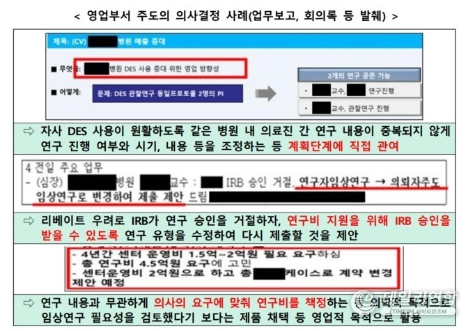 제노스는 2015년 자사 DES 출시에 대비해 주요 병원 의료진에 임상연구를 제안해 이를 매출과 연계할 판촉계획을 수립하고, 매년 목표 매출 달성을 위한 신규 임상연구를 사업계획에 반영해왔다. 이를 통해 전국 54개 병원에 약 37억 원 상당의 부당한 경제적 이익을 제공했다.